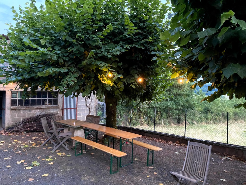 Voor het huis is de binnentuin met twee platanen die tijdens de warme zomermaanden schaduw geven. De zijtuin is ideaal om in de hangmat te liggen. Voor het huis liggen twee schuren waarvan 1 toegankelijk. Naast het huis ligt de boomgaard, zwembad en zonneweide