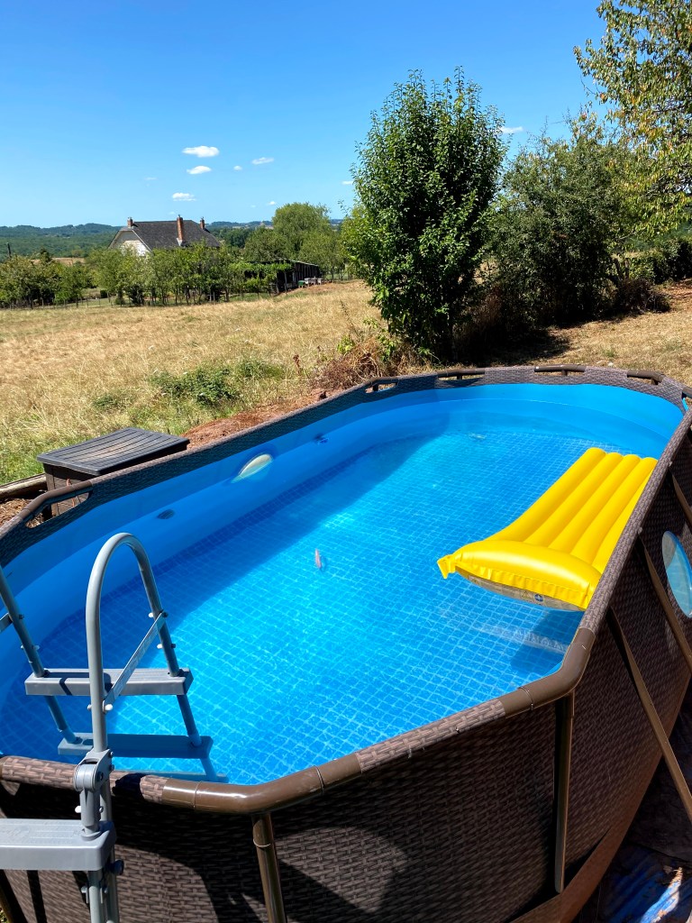 Het zwembad is 2×5 meter, het is een opzet zwembad met volautomatische pomp en zorgt voor de heerlijke verkoeling. Het zwembad wordt wekelijks gecontroleerd door de tuinman die dan ook gelijk het terrein onderhoud. Naast het zwembad is de zonneweide, er zijn voldoende ligbedden aanwezig. Voor de huisdieren die het warm hebben is er zelfs een hondenzwembadje.