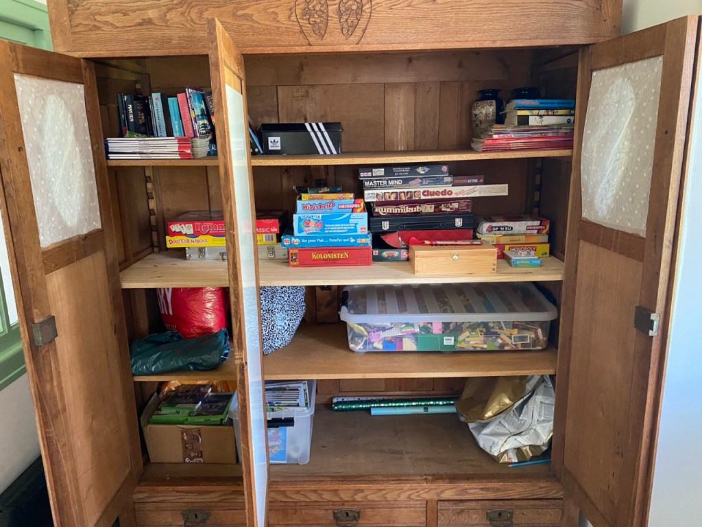 Wanneer we naar de 1e etage willen doen we dat via de hal. In de hal bevindt zich een grote kast met een veelvoud aan spellen, speelgoed en tekenmateriaal. In de hal is ook gelijk een extra voordeur.