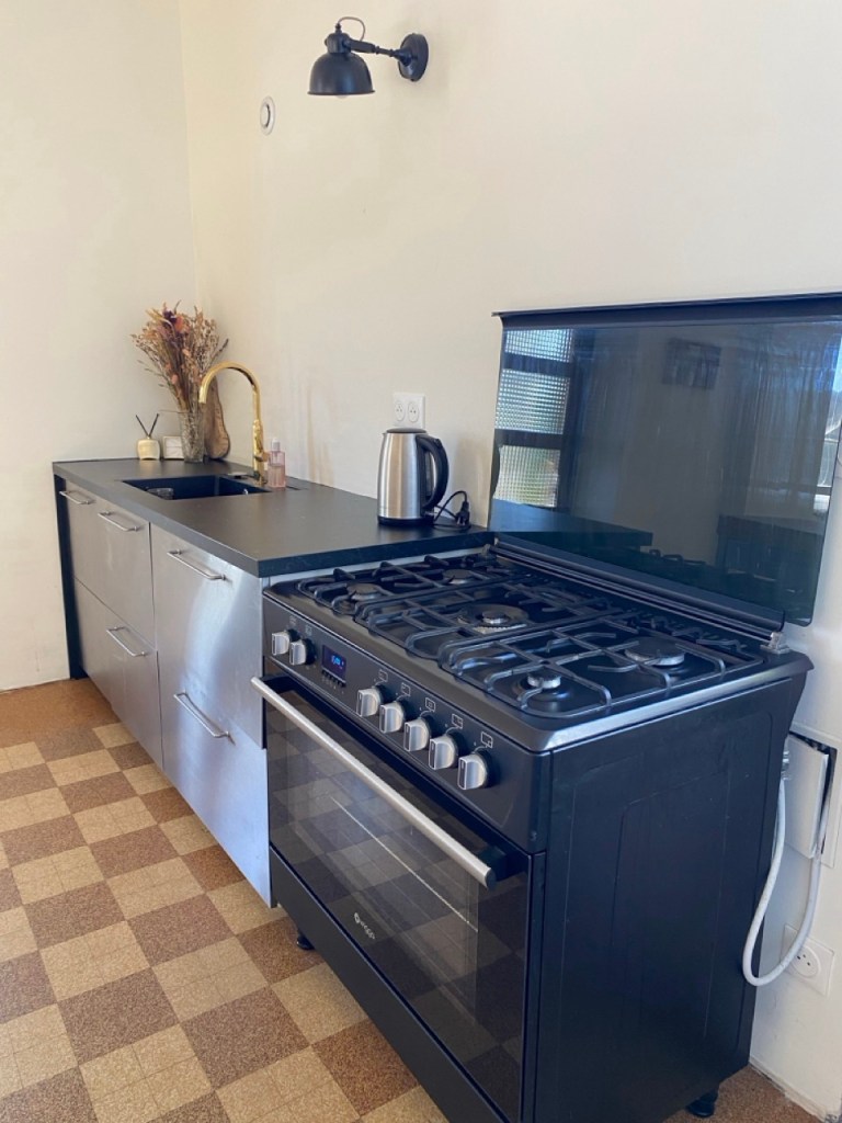 Vanuit de serre komt met de woonkeuken binnen. De ruimte is groots opgezet, de plafonds zijn driemeter hoog, en zeer licht door de vele ramen. De ruim opgezette keuken bezit alle gemakken om culinair los te gaan. Er is een groot 5 pits fornuis aanwezig met brede oven, ijskast met vriesvak en vaatwasser. In de keuken vind je ook alle basics zoals kruiden, bakspullen, bloem etc. Dit is vrij te gebruiken, graag aanvullen als iets opgaat. Voor de koffie liefhebber is er een Nespresso en Bonen machine, ook is er een melkopschuimer aanwezig.