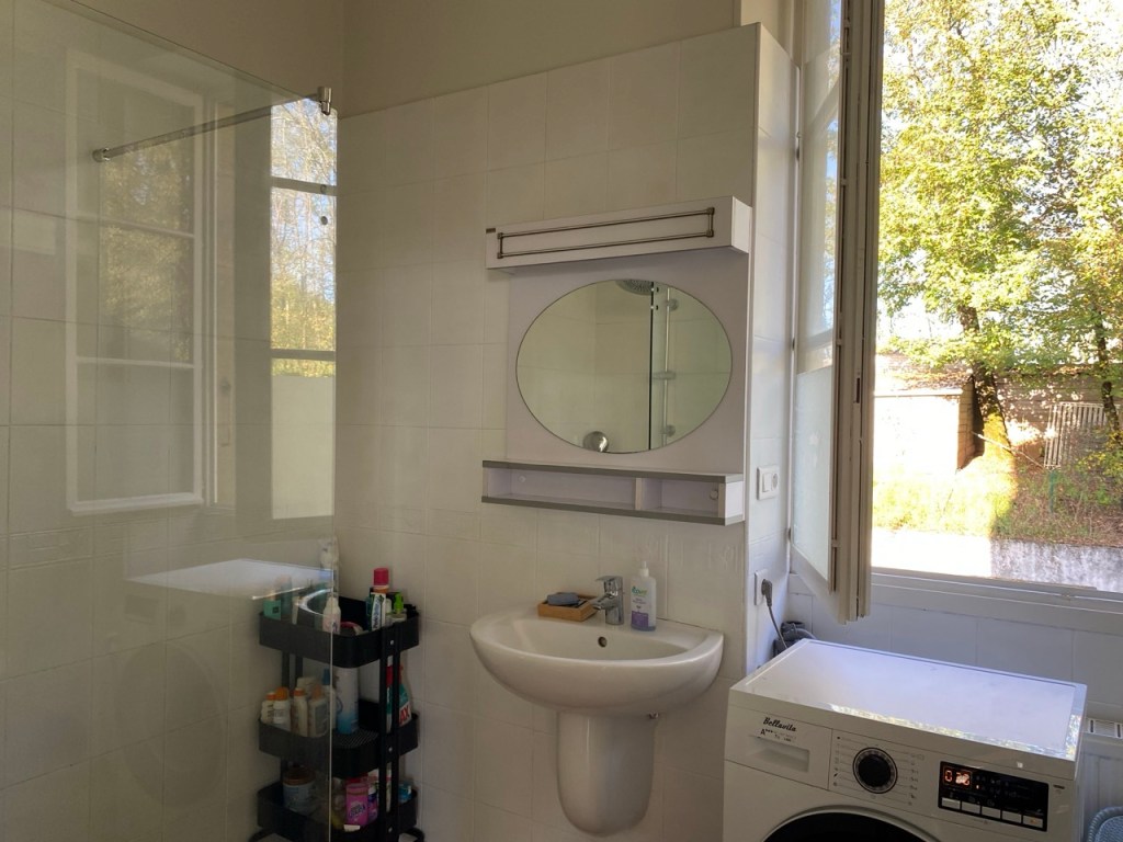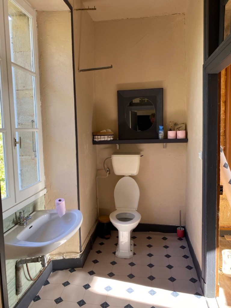 Naast de keuken is ook een badkamer aanwezig met WC en Rainshower. In deze badkamer staat ook de wasmachine met wasmiddel (vrij te gebruiken) en linnenkast voor de handdoeken en badlakens.