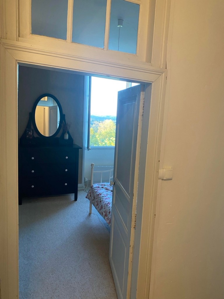 Via een mooie houten trap kom je uit in de gang dat toegang geeft tot 3 slaapkamers en 1 wc