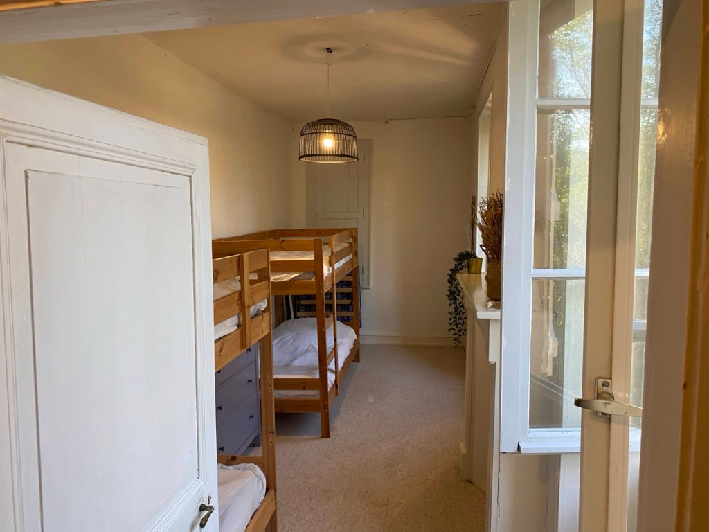 1e slaapkamer: kinderkamer / jong volwassenen – 2 stapelbedden (4x 1 persoons bed)